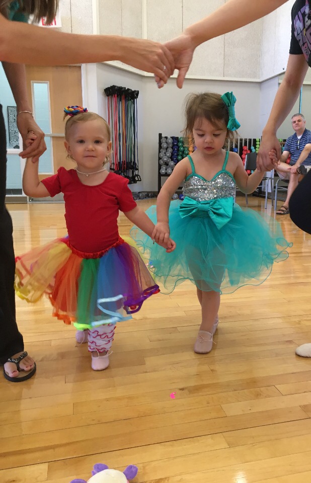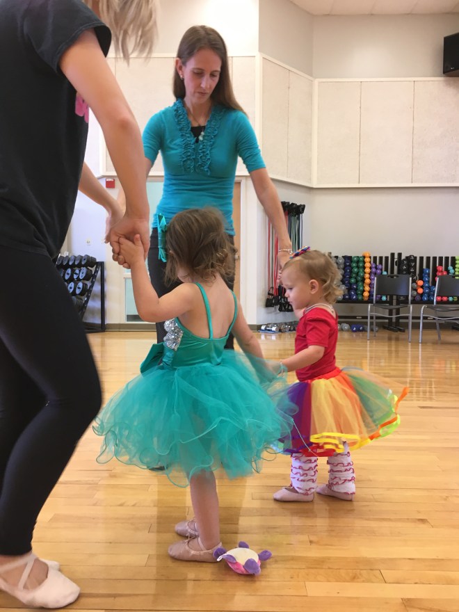 Today was Lucy’s last day at dance class. This summer has been an awkward time for dance as compared to the spring. Lucy really never connected with her summer teacher. She has had reservations about her since day 1. I am not sure why. She LOVED Miss Kristen!!!! Even when Miss Kristen came to visit, Lucy was back to enjoying dance. But with Miss Lindsey, it has been pretty miserable on both of us. Sam and the kids came to watch, and we did not even make it 10 minutes into class without issues. Lucy was refusing to do anything she was asked, and kept rolling her eyes at her teacher. I could just feel my blood boiling! Hard to believe a two year old can pack so much attitude. I finally decided it was best for everyone if we just left. Lucy screamed the entire way home, saying she was going to behave, but I wasn’t going to take anymore chances. She said that the first time we went in the hallway. It is just so sad to me because she LOVES to dance at home. She is dancing, twirling, and singing all the time. We will be looking for a new dance class come fall. I would love if she could go back to Red Door. She just has to be able to be okay without me for the class. It’s all a work in progress. Brandi managed to get these two super cute pictures of Lucy and Maedreigh in the probably only 2 minutes of Lucy actually cooperating today.