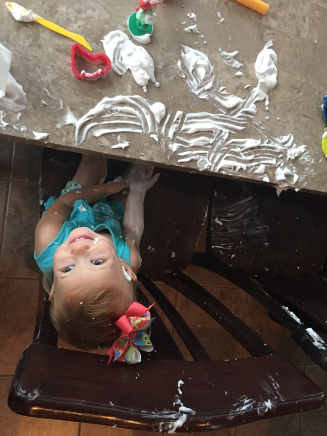 While she napped, protected by Gypsy, we took the opportunity to create some messy science experiments. We will definitely change science to Tuesdays/Thursdays for this year, since that is when she will be at school. The boys are dying to do “dangerous” things!