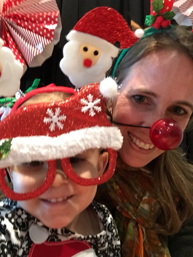 They had a blast deciding what we would wear for our crazy Santa pictures. Poor Santa and Mrs. Claus are practically covered up! 🤣 Then Lucy woke up because everyone around was laughing so hard. She managed a half “Smile for the camera!” at the very end. So great!