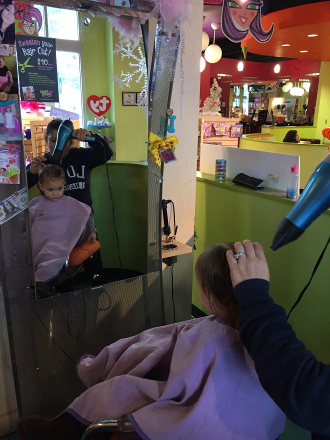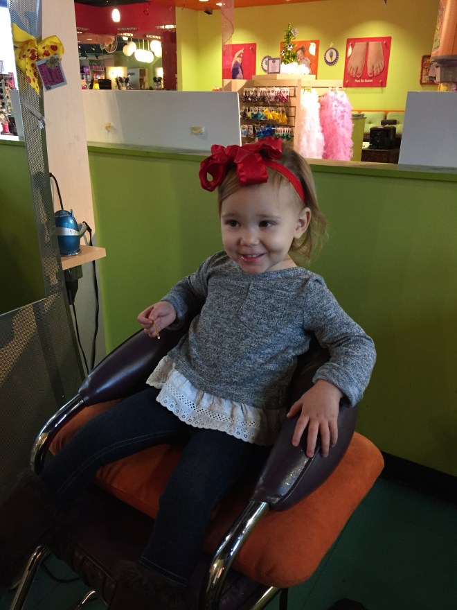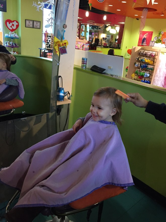 Lucy’s hair has gotten so crazy and out of control! It is so fine, and still pretty sparse, it really needs a boost. So, we decided to take the plunge and give her her first haircut. I researched out who was great with little Kids2 did decided to go to Sweet ad Sassy. All my other kids had theirs done at Kids Cuts & Curls in Allen, but their reviews now are horrible.