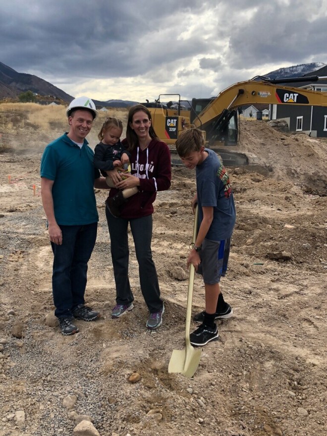 We had to come without Natalie and Alex, because they were both in school and had no notice of this. But no big deal! We are finally getting a place to call our own. We could not be more excited!!!!! Sandy was so sweet and brought us the golden shovel to mark our ground, the construction hat, and a bag of gummy bears for the kids. It was SO nice. Now our pictures should include the makings of a house, much better than just a field of dirt. ๐