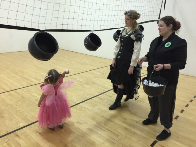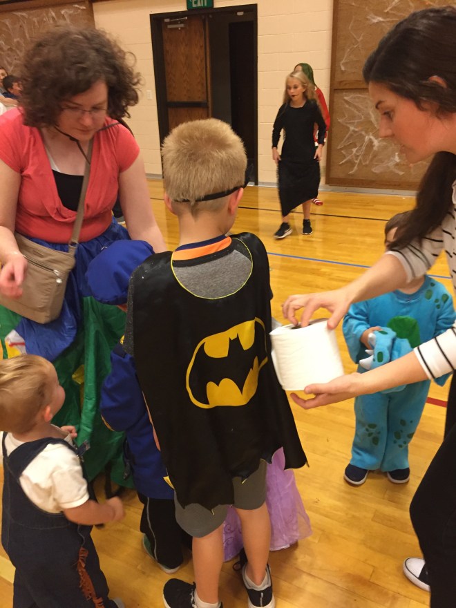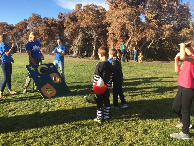 From there, we went to the Carnival Game Corral and then Trick or Treat Lane. The kids were able to “go door to door” and get treats from several rec center employees.