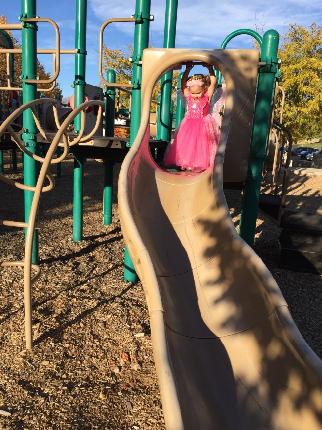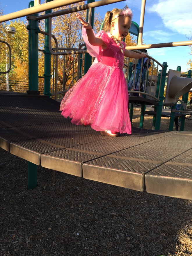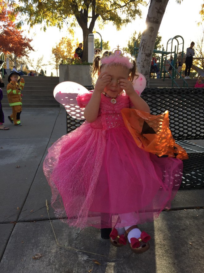 It was Costume Day at Lucy’s dance class today. I was a bit worried since her costume is quite poofy this year. I tried to persuade her to leave her wings and necklace at home, but that was useless. She had to have every component for “Princess of Pink” Pinkalicious possible.