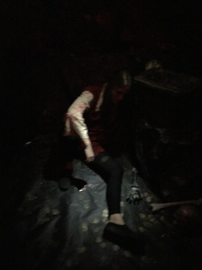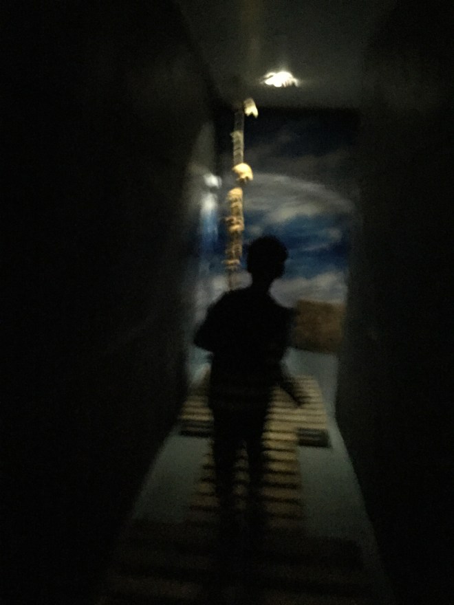 Bad idea. She was terrified! I have to admit, walking through sheets hanging everywhere and not being able to see where you are going, knowing that there are zombies and pirates hiding in there with you, is pretty scary! Lucy said the most freaky part was the pirate lady that was in jail yelling, “Let Me Out!” Lucy kept telling us, “That was Dang Scary!” Alex and William went through The Zombie Apocalypse together, since we thought it would be too scary for Lucy, but they said it was not as scary as the Haunted Pirates.
