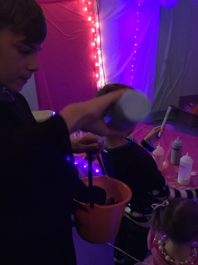 We ended the evening on a lighter note at Tink’s Pixie Dust Maker. The kids were able to create their own concoctions of edible pixie dust and cap them off in a special tube. I have to say, after three hours of nonstop entertainment, on top of Natalie’s event earlier, we were exhausted. It was a fabulous day though and we will for sure be adding the Spooktacular event as a new Hardy Family Halloween tradition.