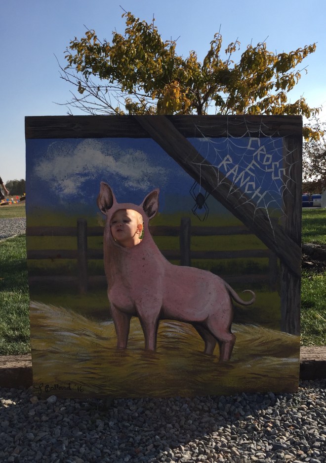 Lucy fell in love with the Wilbur cut out . The instant she got her face in the hole, she started oinking like a pig. I wish I would have videoed it.