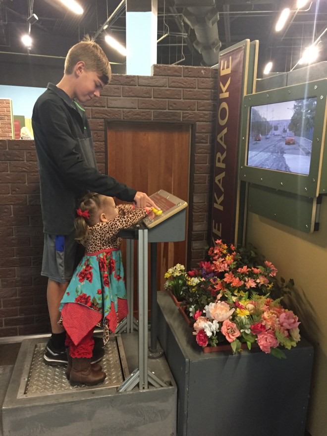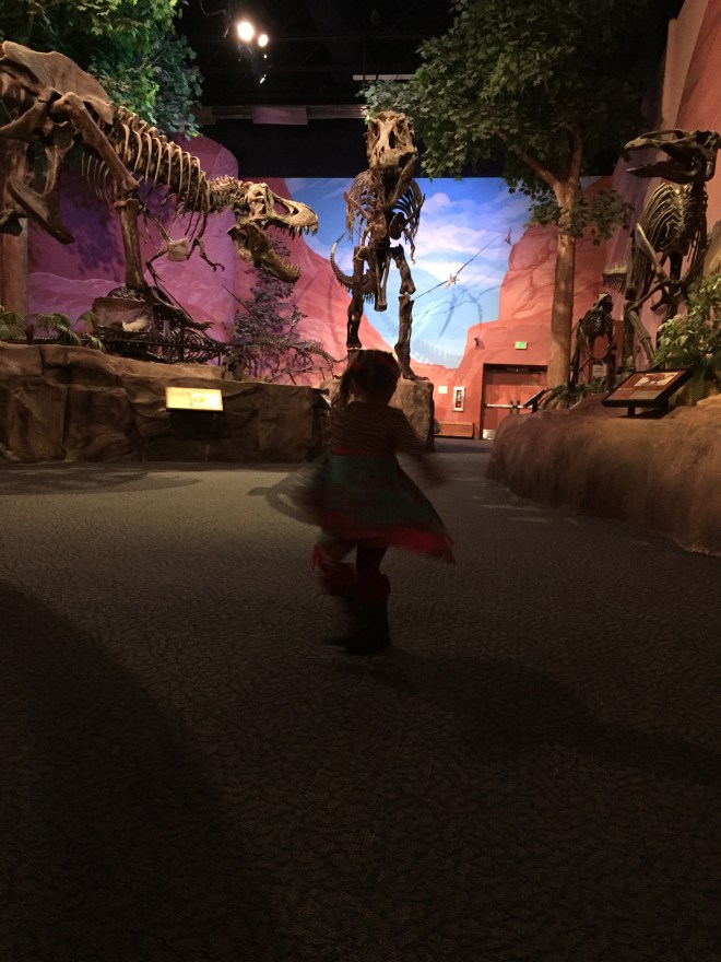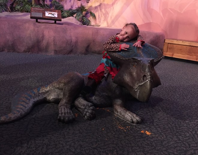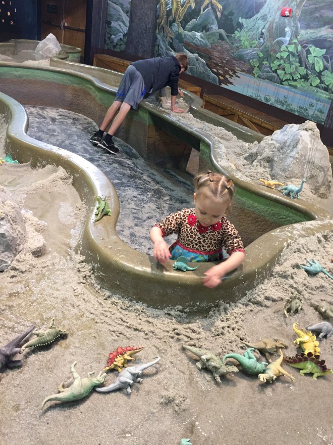 The dinosaur models at this museum were spectacular! I wish I would have taken more pictures of them, but of course Lucy had to go potty when we were at the biggest of them. We had to make a mad dash through the entire museum back to the restrooms, and then took a short cut to get back where we last were. She fell in love with this baby dinosaur. (But no, we were not the ones to feed it goldfish.)