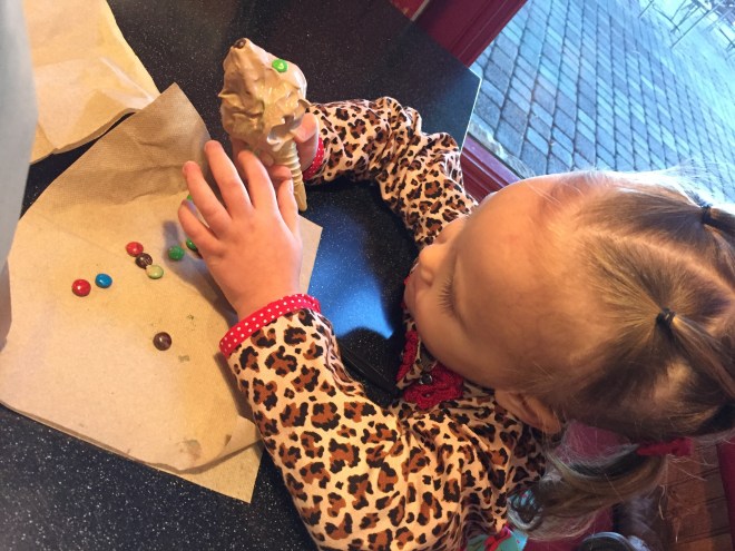 Everything is decorated so beautifully right now. When we left the museum, I promised Wii and Lucy a little treat. They had a fabulous little cafe next door, with some pretty amazing treats. Lucy was able to get an ice cream for $0.50!