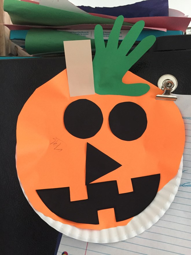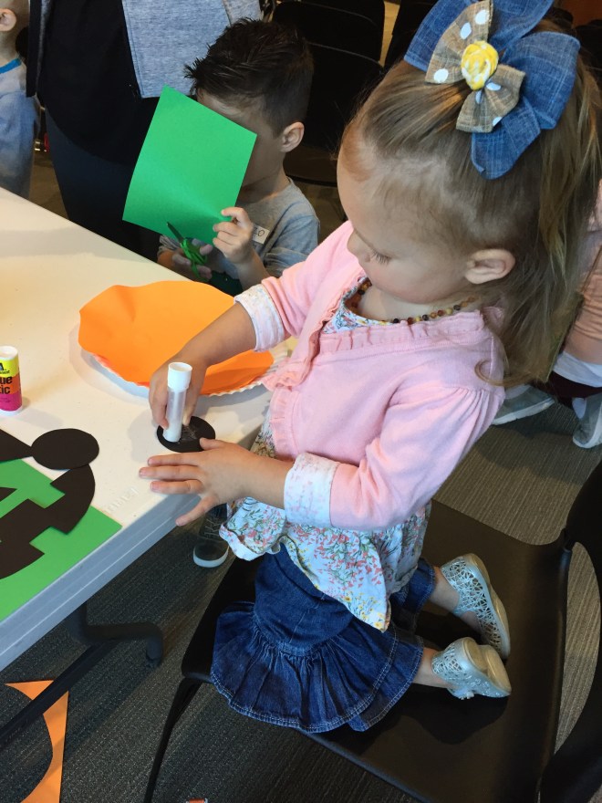 Afterwards, Miss Sarah had a pumpkin craft for the kids to create. Lucy’s turned out pretty good. 😊