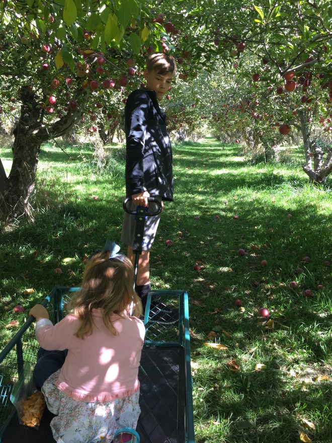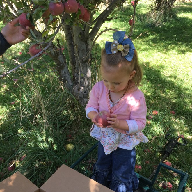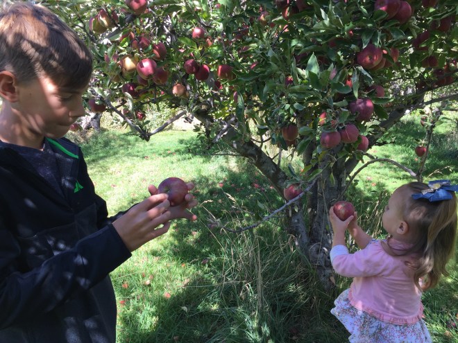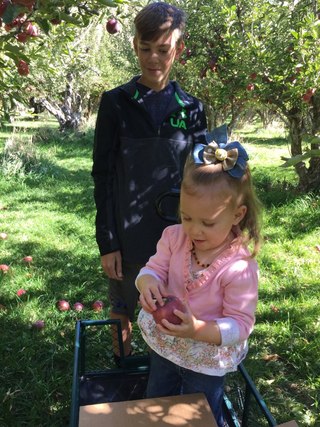 When we were finished, we hurried home, ate some lunch, and headed over to the orchard. We have watched these apples grow for the past several months. NOW IT’S PICKING TIME!!!