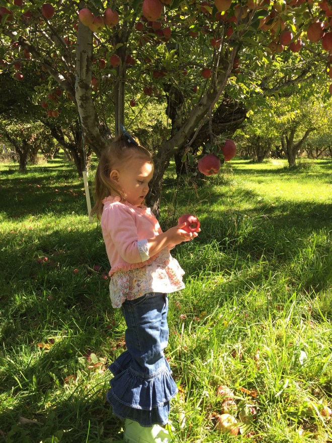 Lucy found a slug on an apple on the ground. She decided to have it ride with her the rest of the time we were there. When it was time to go, she let it “go back to its family to have fun.”