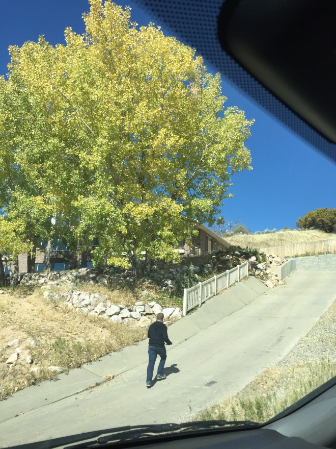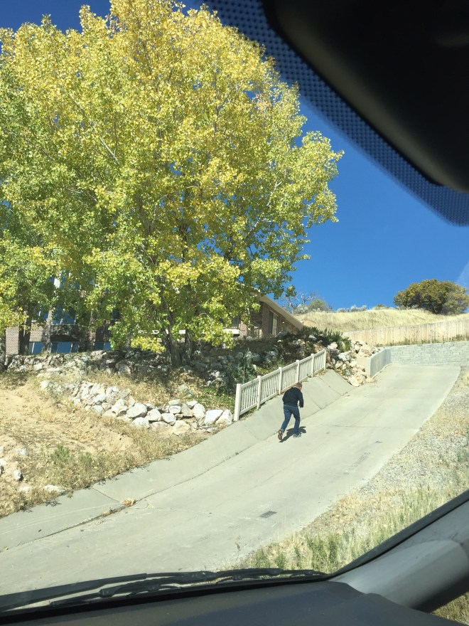 The kids keep complaining that everything in Utah is uphill! As we were passing out fliers for our neighborhood fall festival today, Sam got the REAL feel of Hills!
