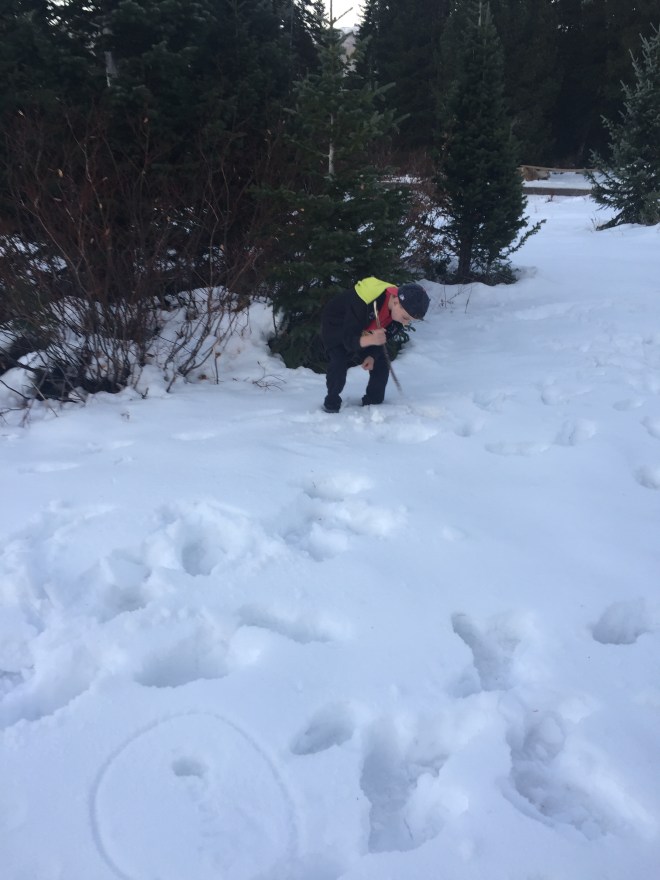 Our neighbor buddy enjoyed drawing in the snow and trying to figure out what was underneath it.