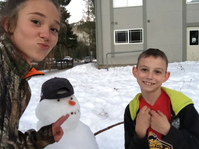 The kids had a blast finally being able to build a “life-size ” snowman. Those Texas mud-monsters are no match for this guy!