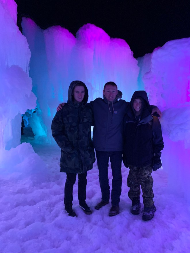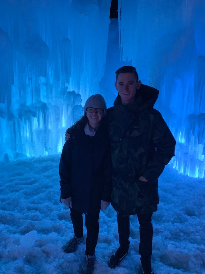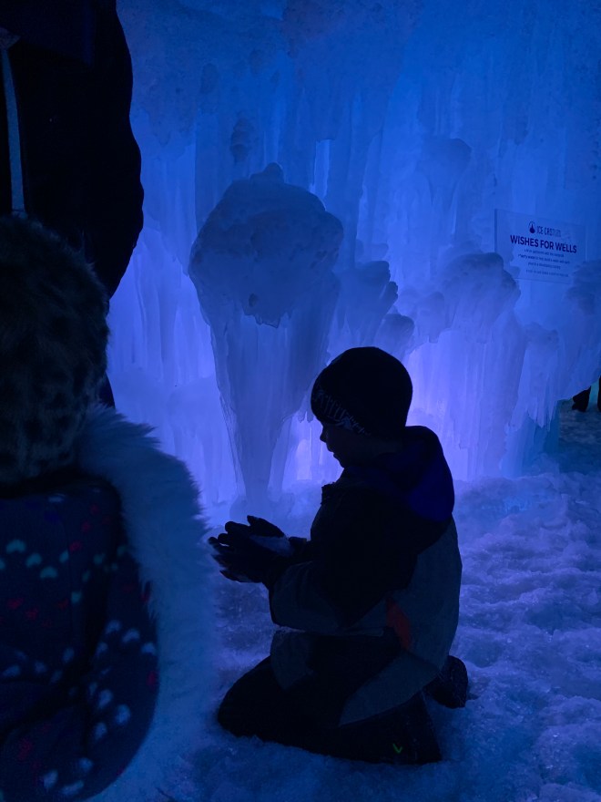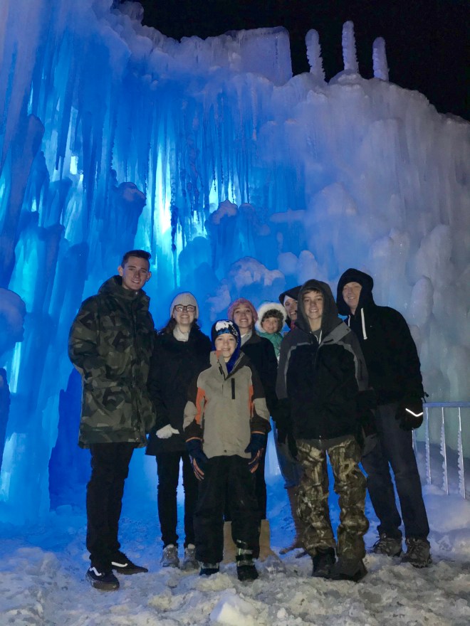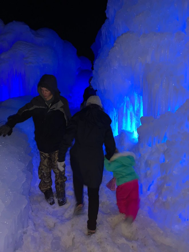 We made an extra effort tonight to take one last entire family adventure together before Wednesday. We picked Brie up after classes and headed to the Ice Castles in Midway. Luckily, the snow held off and made for a very easy drive through Provo Canyon. It was still quite cold though.