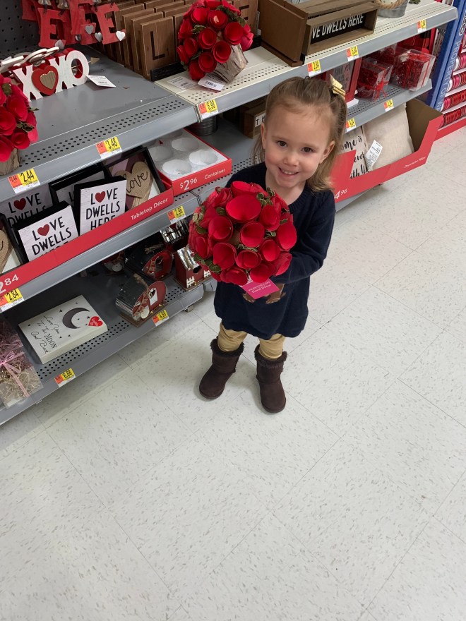 I had to make a quick trip into Walmart. With Lucy, quick is not always easy. However, her detours were thinking of others today. She ran up to me with this bouquet of wooden roses, insisting that we buy them for Brie. I love seeing their relationship blossom. Lucy LOVES Brie being home and able to visit us on he weekends.