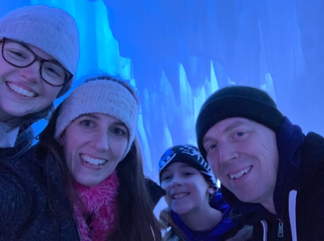 When the big kids finally made it down the tunnels, everyone was pretty frozen. Alex was also still a bit in shock from the wild ride. 🤣 Temps in the teens definitely were cold in the mountains! Plus, Lucy had to go potty. Trying to get her out of her “snowman suit” in a porta-potty was not in my plans. So, we decided it would be best to head back home. (Plus Brie had a full day of classes ahead of her.) This will for sure be on our list to visit again next year though! It was really a great sight to see!