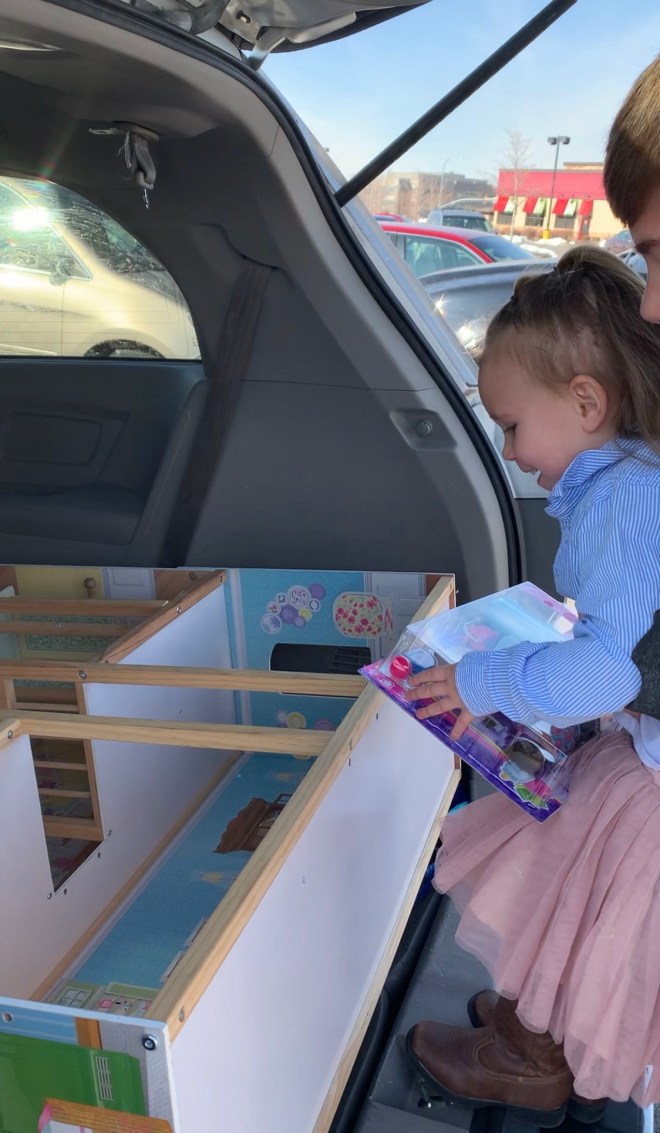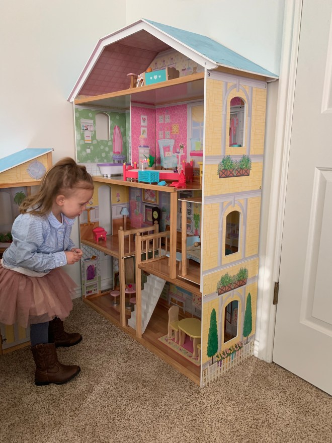 Lucy has completely fallen in love with playing dolls and watching YouTube videos of girls playing with doll houses online. (The big kids think they are totally weird. 🤣) Lucy LOVES them! She has been trying to fit her Barbies and Princess dolls into Brie’s old dollhouse, but it is just way too little. Since none of the kids have used their Christmas money yet, we figured Lucy might enjoy using her “Mimi Money” on a new dollhouse.