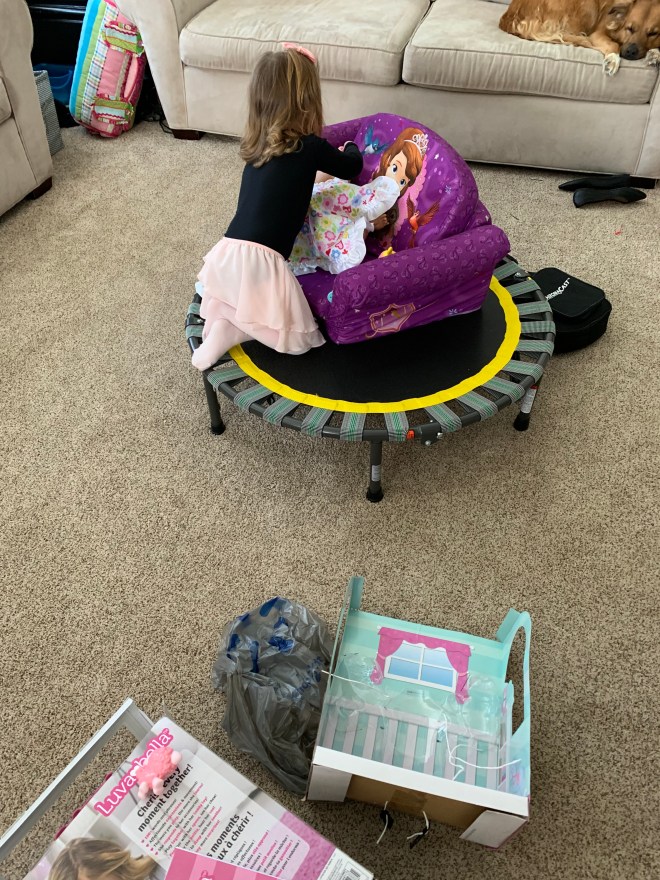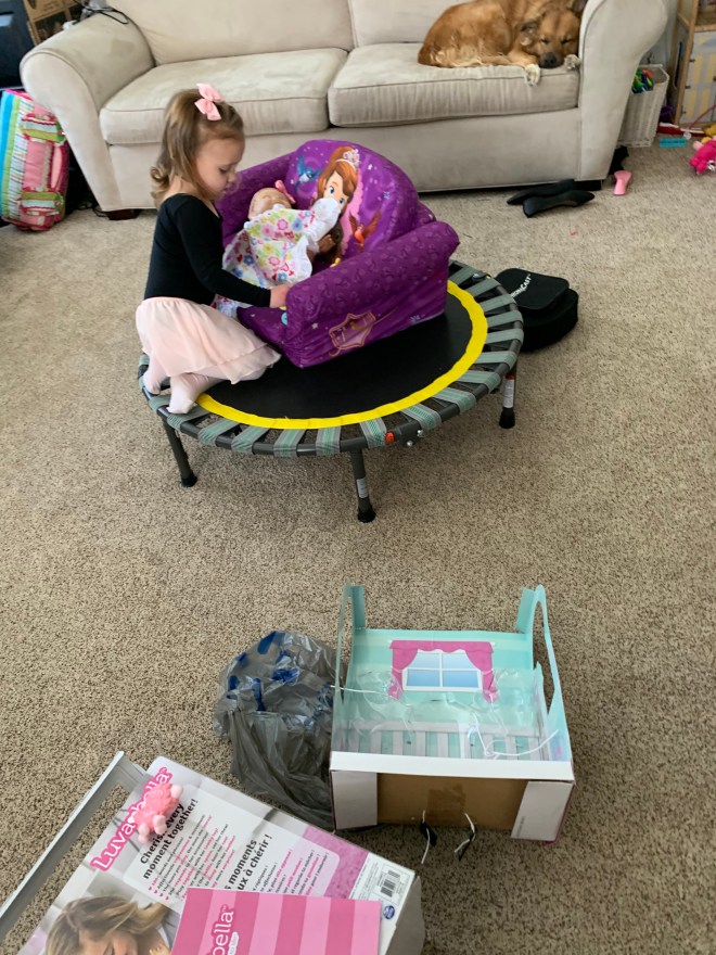She played with her all afternoon. Feeding her. Rocking her. Tickling her. SO adorable! I’m so glad she really likes her. The boys are also glad “creepy Luvabella” is gone. It was pretty scary to come in a room with her mouth going sidewards and her voice stuck on repeat. Glad the new one works great!