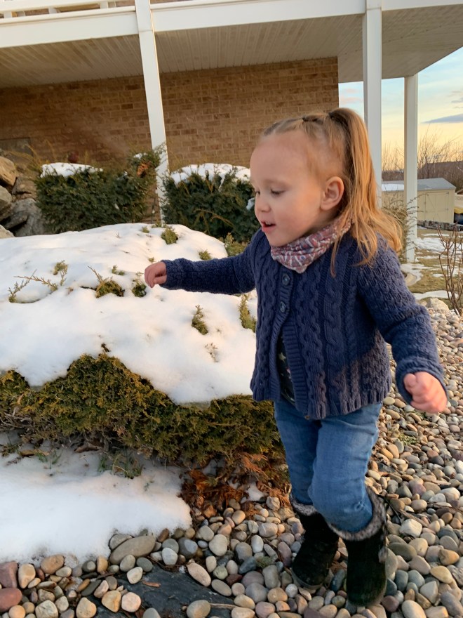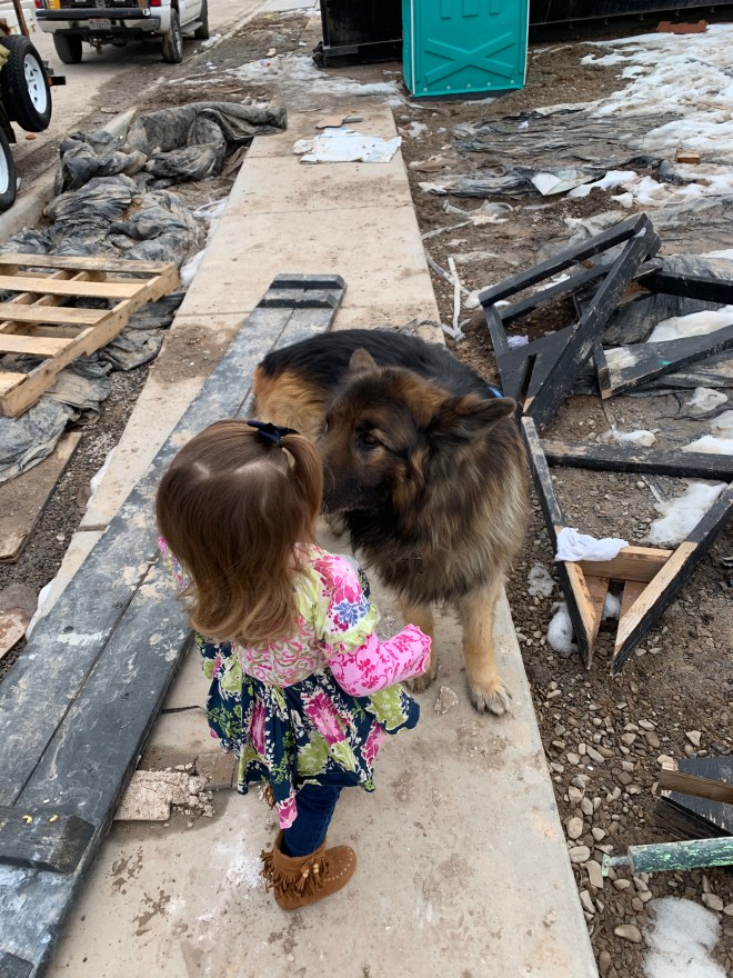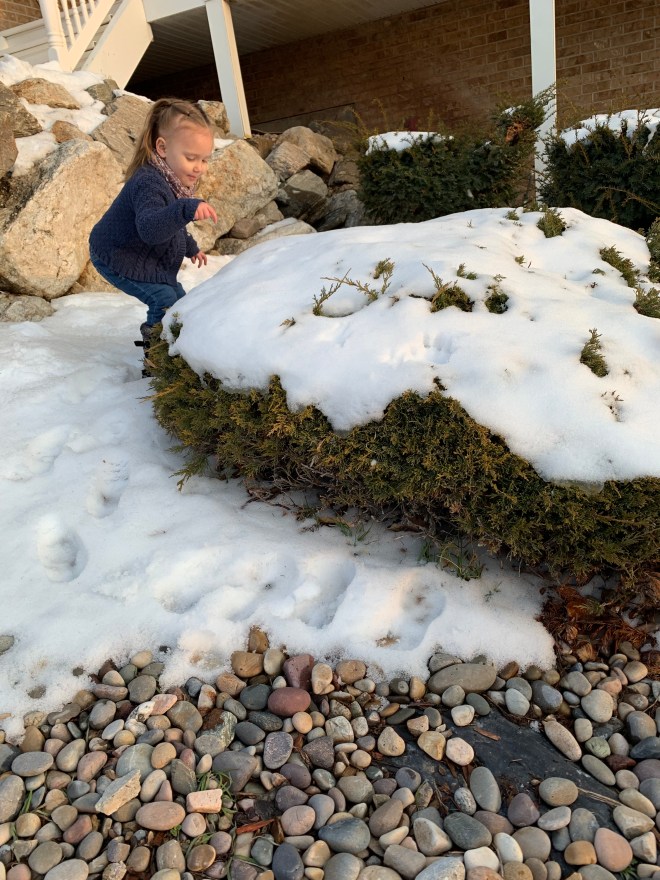 I love her little imagination (and sometimes the sass that comes with it). We “chased” the bear a bit, but it didn’t take long for her to get cold and want to go inside. I am super excited for her to truly have a space of her own to play and imagine. All the kids are so ready for that!