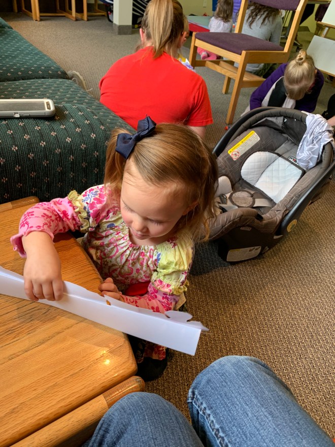 Lucy was SO excited to see “Khaliyah” when we went to visit our house today. It will be nice to get to know this sweet dog’s real name when we move in. For now, Lucy calls it Khaliyah. (Very original.) I just hope our Khaliyah can be friends with it. We visited a new storytime library today also. Lucy was a bit shy and apprehensive. They sang songs, read books, and played musical instruments.