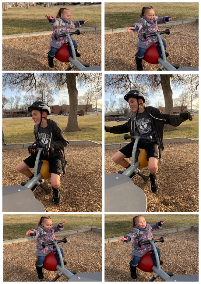 William was trying to teach Lucy “how to fly.” The paranoid mom in me was terrified that she was going to flip off.