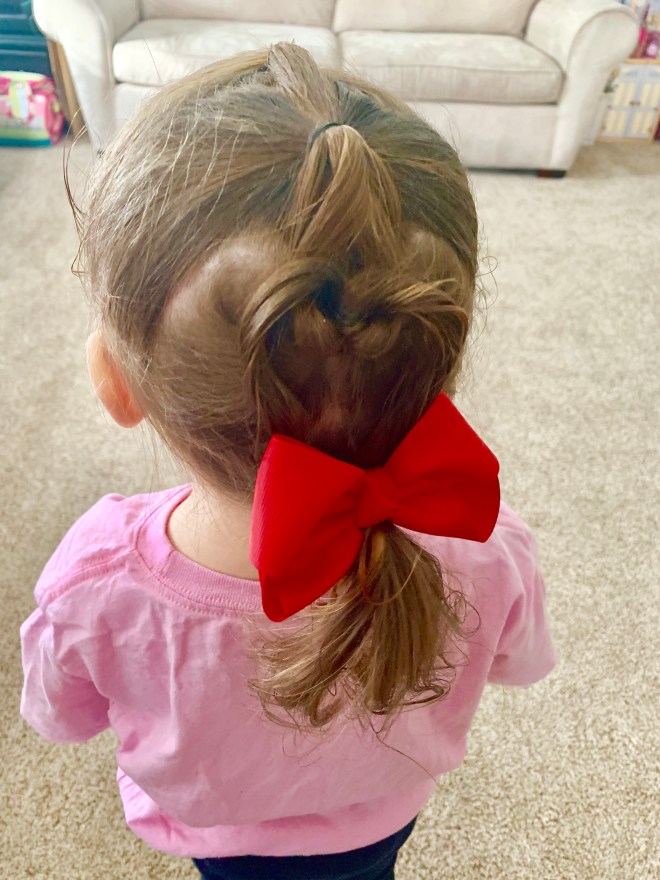 We finally have hair!! Lucy’s hair is getting long enough to really do some cute things with. She is SO amazing at letting me do them too! I am so grateful that my last little girl came with a tough head and patience. Brie and Natalie would have never allowed me to do what I do with Lucy’s hair. 🤣