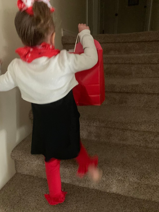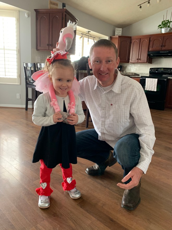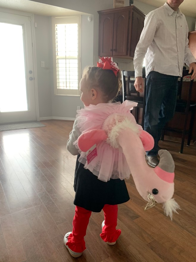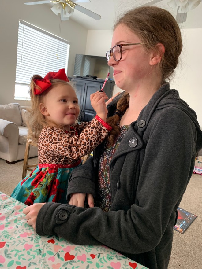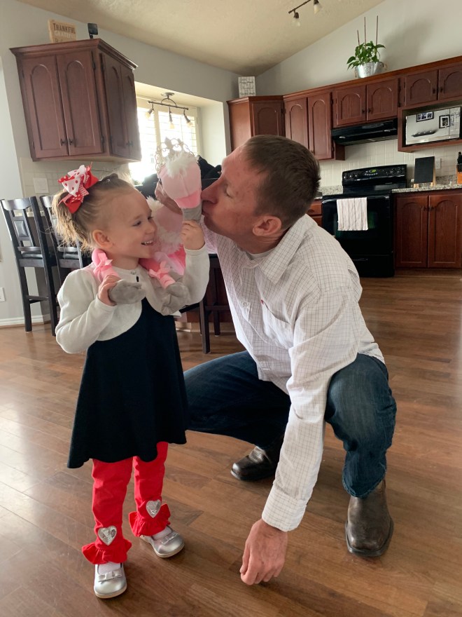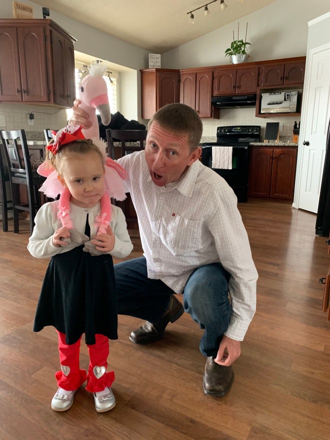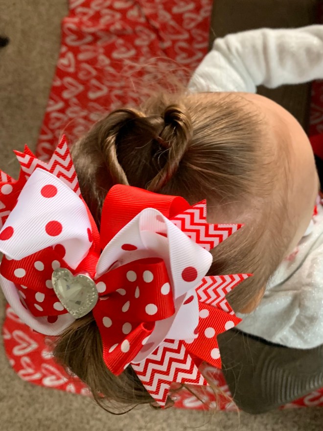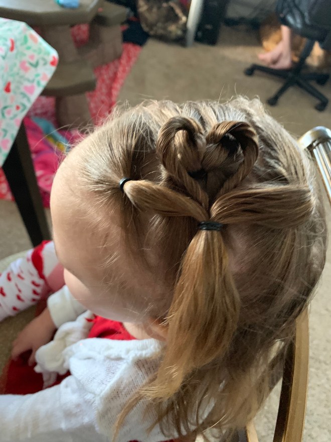 Best heart hair yet, now that Valentine’s Day has come and gone. Next year, I’ll be a pro and have much more hair to work with. Valentine’s celebrations weren’t quite over, as Lucy had her party at dance today. I am so very bummed, though, because my pictures did not take, and what I thought Eric had taken, he cannot find either. He thought he sent them to Sam’s parents, but he did not. 😭 Somehow they got deleted or didn’t get saved.