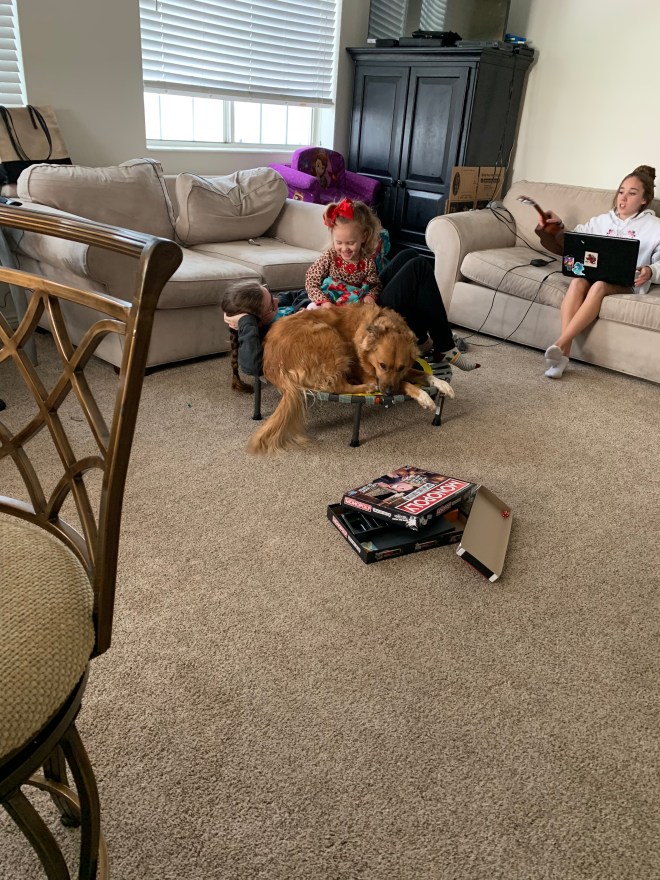 After a bit, I saw her inside Natalie’s trampoline box. I asked her, “Lucy, what are you doing?” She promptly replied, “I am NOT Lucy, Mom! I am actually a mermaid! Can’t you see my tail? I’m swimming in the ocean. Swim. swim. ” I guess she’s been watching quite a bit of Finding Dory.