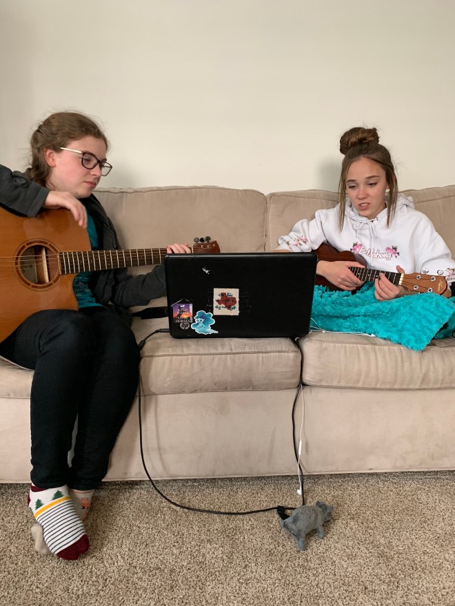 I LOVE hearing the girls sing and play together again. I have really missed having all the music in the house. I cannot wait to have all our instruments back!