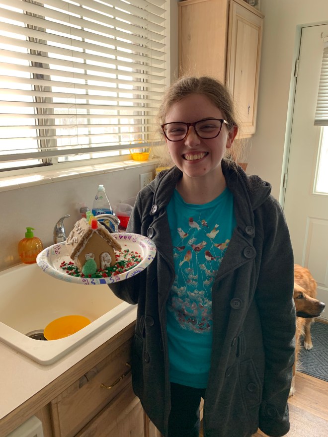 The sun reflecting off of the bright white snow was a bit much for Lucy’s eyes, so picture taking had to be taken inside.