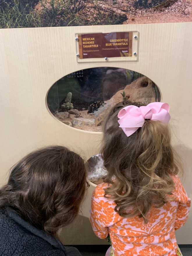 The varieties of moths and butterflies inside were incredible! One in particular was so spectacular! It had glass-like spots on its wings that you could see through. The educator on staff said that it was an Atlas moth. It hatches from its cocoon without a mouth. It only lives for a couple days, with its soul purpose to mate and then die. They said it was super rare for us to even get to see one.