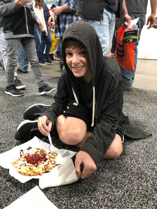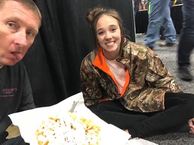 After breakfast, Natalie and William went to the Outdoorsman show with Eric and Josh.