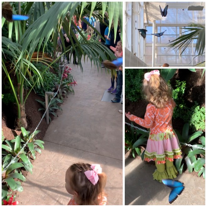 The Blue Morphos were pretty incredible as well. They were like big blue birds, that were not afraid of all the people at all. Lucy wanted one to land on her hand so bad. They were too smart for that.