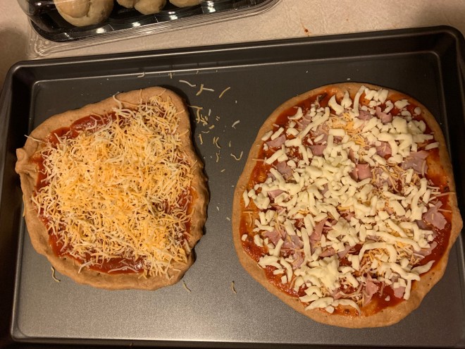 Dad is in Texas, so we thought we’d do a fun dinner night. We tried out a new pizza recipe from online, and it was actually quite good.