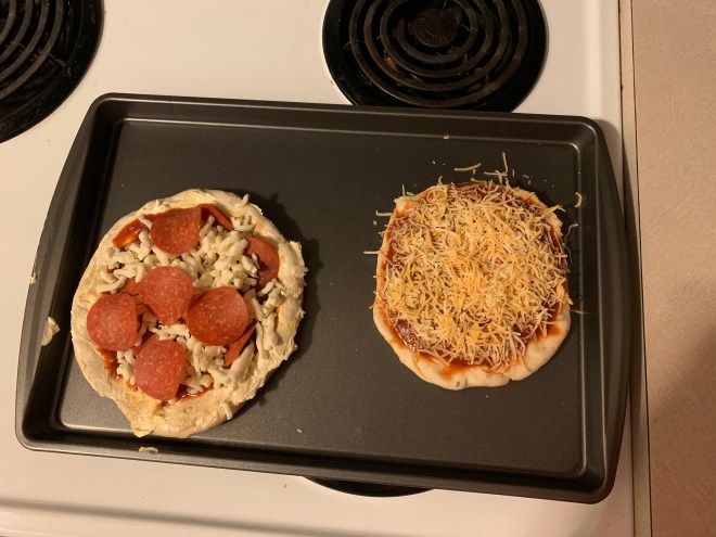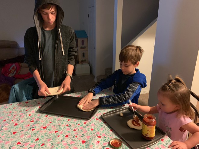 Dad is in Texas, so we thought we’d do a fun dinner night. We tried out a new pizza recipe from online, and it was actually quite good.