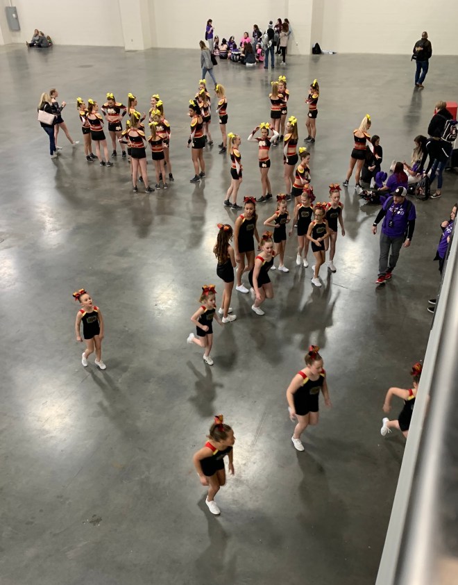 Natalie had to sacrifice school cheer this year due to our move. It has been a very rough and emotional time. She also had to turn down two invitations for upper level competition cheer squads because we didn’t know our new house completion details to commit to a full year of competition cheer. It has definitely been a humbling experience for her. We found a cheer gym that would allow her to cheer on their prep team that ends mid spring. (Less of a time commitment if we move.) This squad, however, consists of experienced girls, as well as beginner little ones. 5year olds. Natalie was quite humiliated in the beginning, and threw quite a huge fit. Luckily with some time, she grew to understand that sometimes you have to be the helper, instead of everyone always helping you. She has grown a lot over the past several months. Her team won’t be stellar while she is with it, but they are hard workers and try their best to do the very best they can with what they have. I think that matters more than anything else.