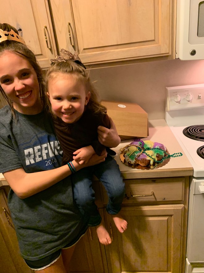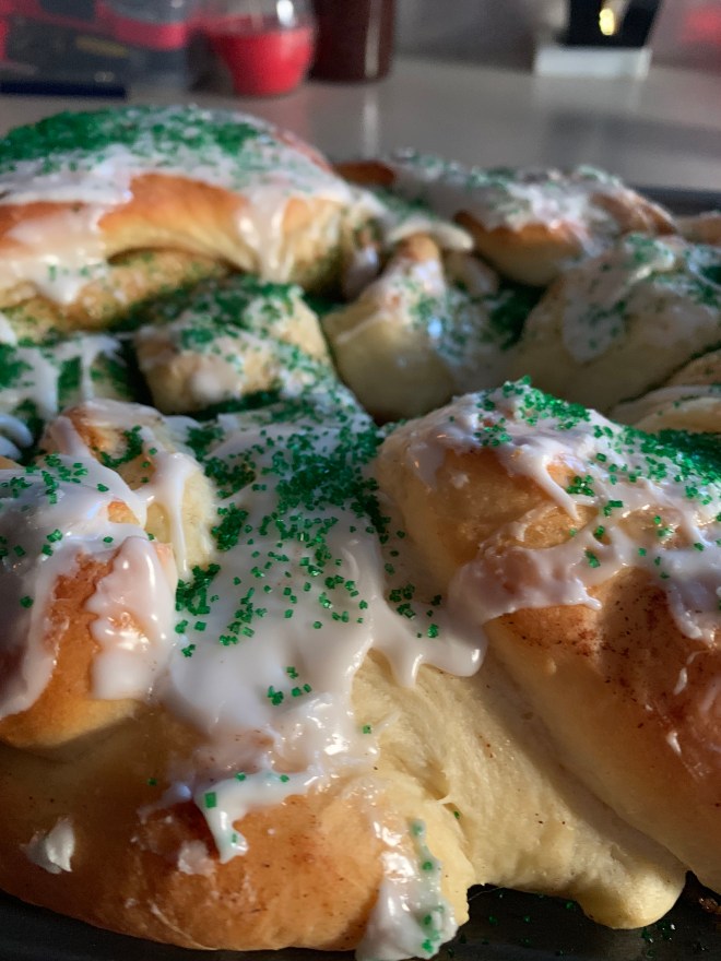 Brie decided to try her hand at homemade king cake. I have to say, hers turned out AMAZING! I think I know who we’ll commission to makes ours next year.