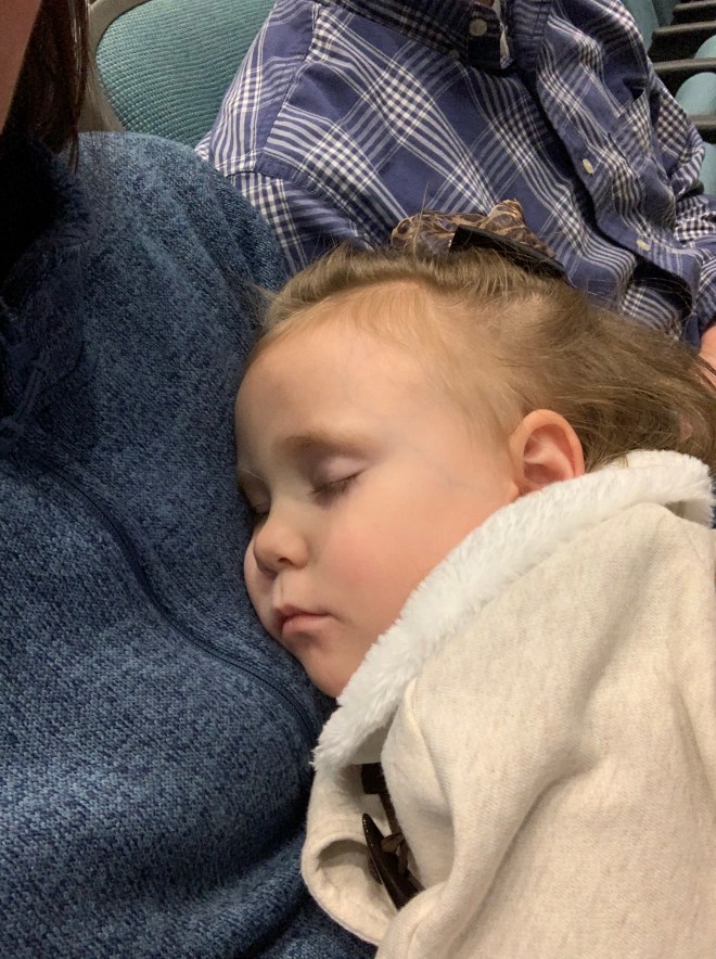Luckily Lucy was so tired from all our craziness, she slept through the entire concert! (Only when it was over, and Brigham and Landon came by, she woke up.)