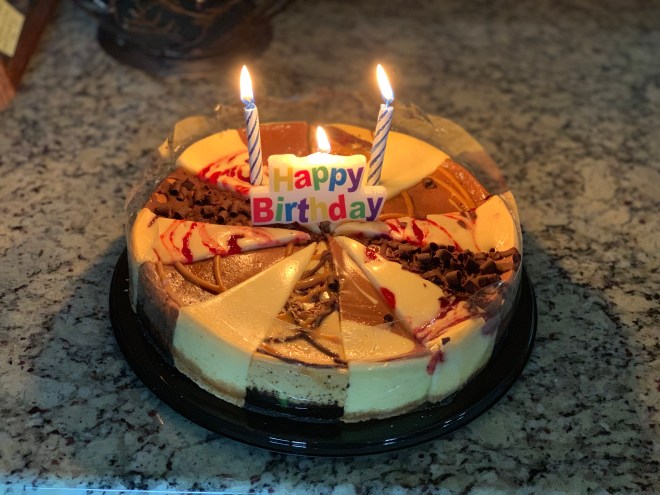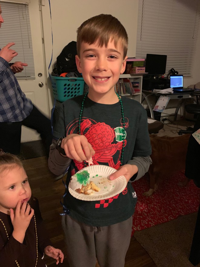 Once we grabbed a quick dinner, we celebrated Mardi Gras with a king cake from Gourmandise Bakery. Definitely NOT a Louisiana king cake, but it worked for the night.