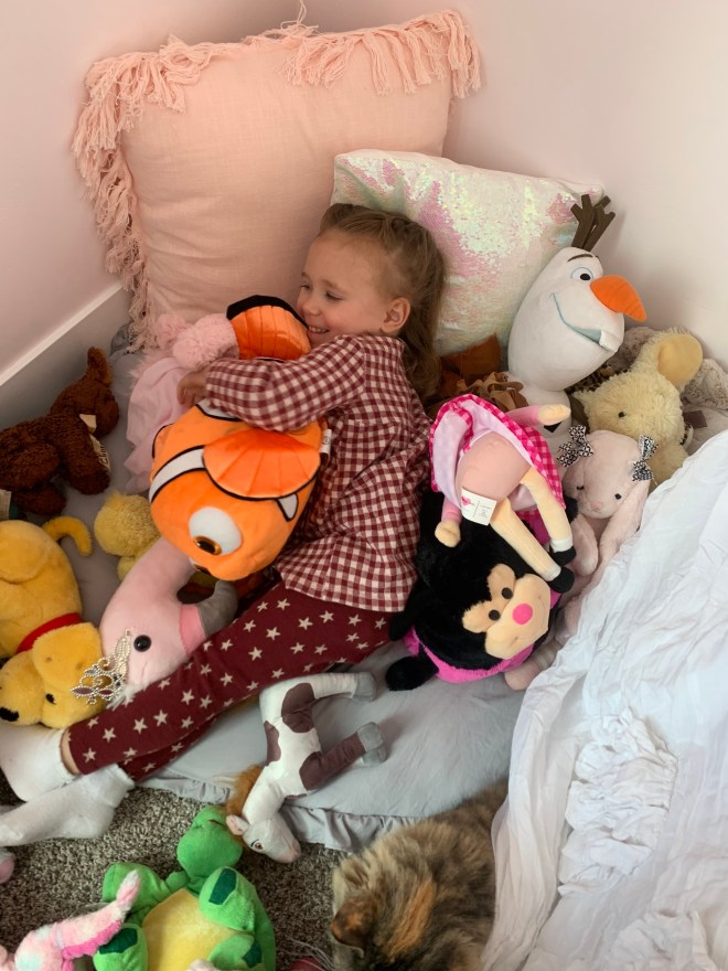 Reuniting this girl and her stuffed animals has been priceless. She’s been having tea parties and campouts all day. I love seeing her so happy and excited.