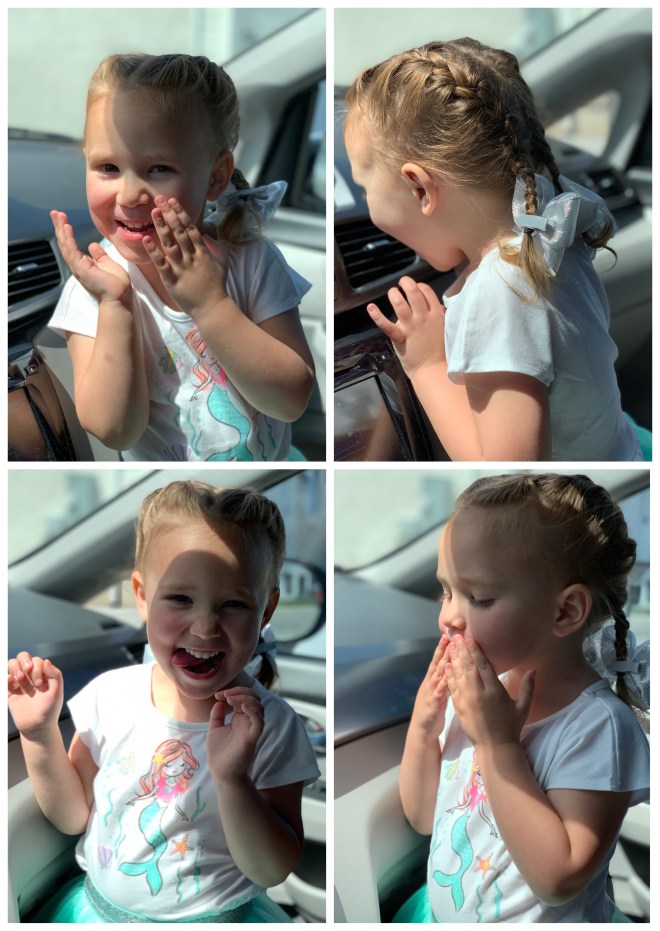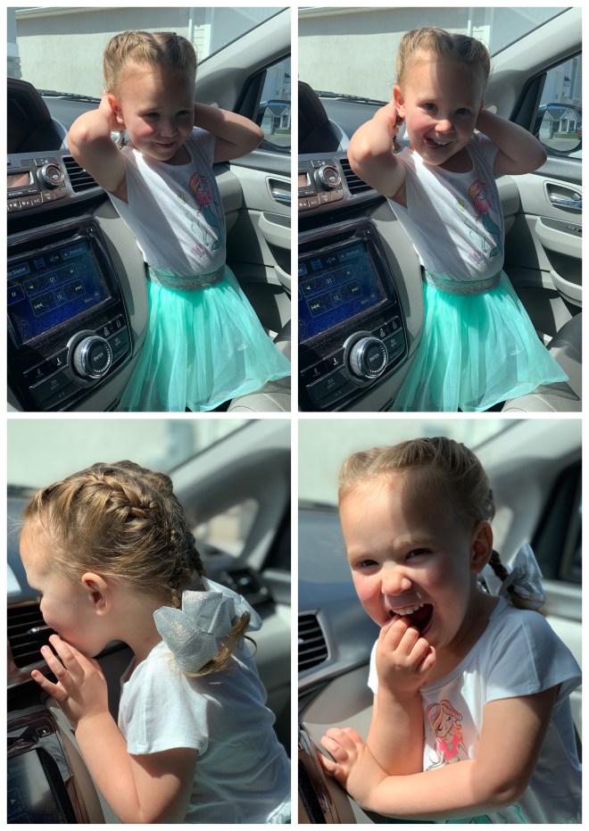 We had to run some errands this morning, and when we got home, Lucy’s movie was not over yet. She really wanted to finish it, so I said we could stay in the van for a few more minutes. I know how this will always turn out. 1. She’ll tell me to unbuckle her. 2. She’ll climb all over the back of the van. 3. Then she’ll come hang out with me in the front. (Totally cannot see her movie from the from seat!) Usually when we get to number 3, I just turn off the van and we go inside. Today, however, i was cracking up because Lucy kept rubbing her face and hair in the vents of the AC. When i asked her what she was doing, she tells me, “Mom! I’m taking a shower!”