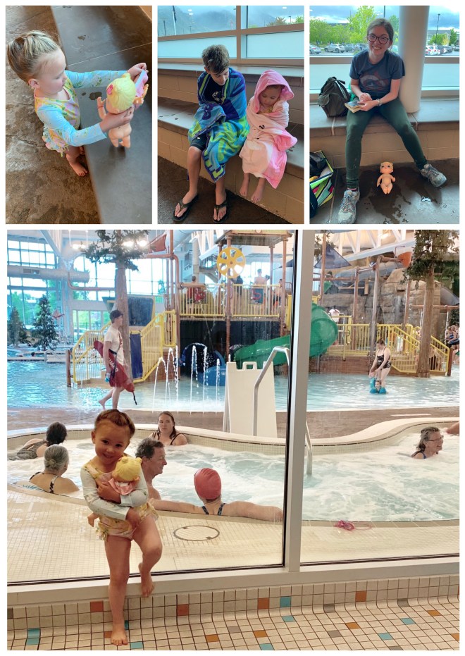Believe it or not, summer is quickly approaching. Before all the school kids fill all our quiet fun places, we made one last quick trip to the pool. Even though it was pouring outside, and snowing in the mountains, we were nice and warm inside. (Minus if you got out by the windows!)